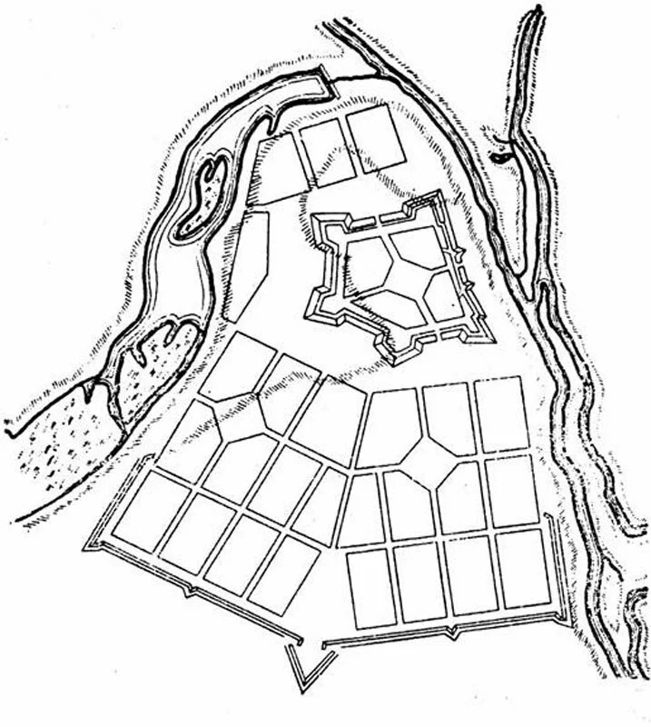 На общем плане города, который я постил выше, вверху справа находится цитадель на 12 бастионов. Вот ее более подробный план: