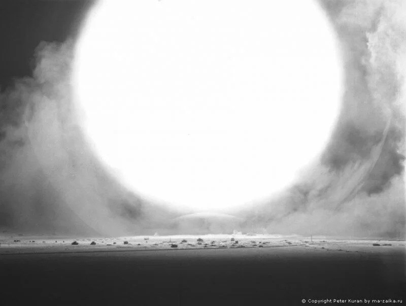 В нашем случае воронка диаметром 4.7 км. Очевидно, она была гораздо мощнее. Город стерт с лица земли. Явно видно, что выброса грунта не было. Грунт просто вдавлен. Такой эффект даст низковысотный взрыв. Вот такой: